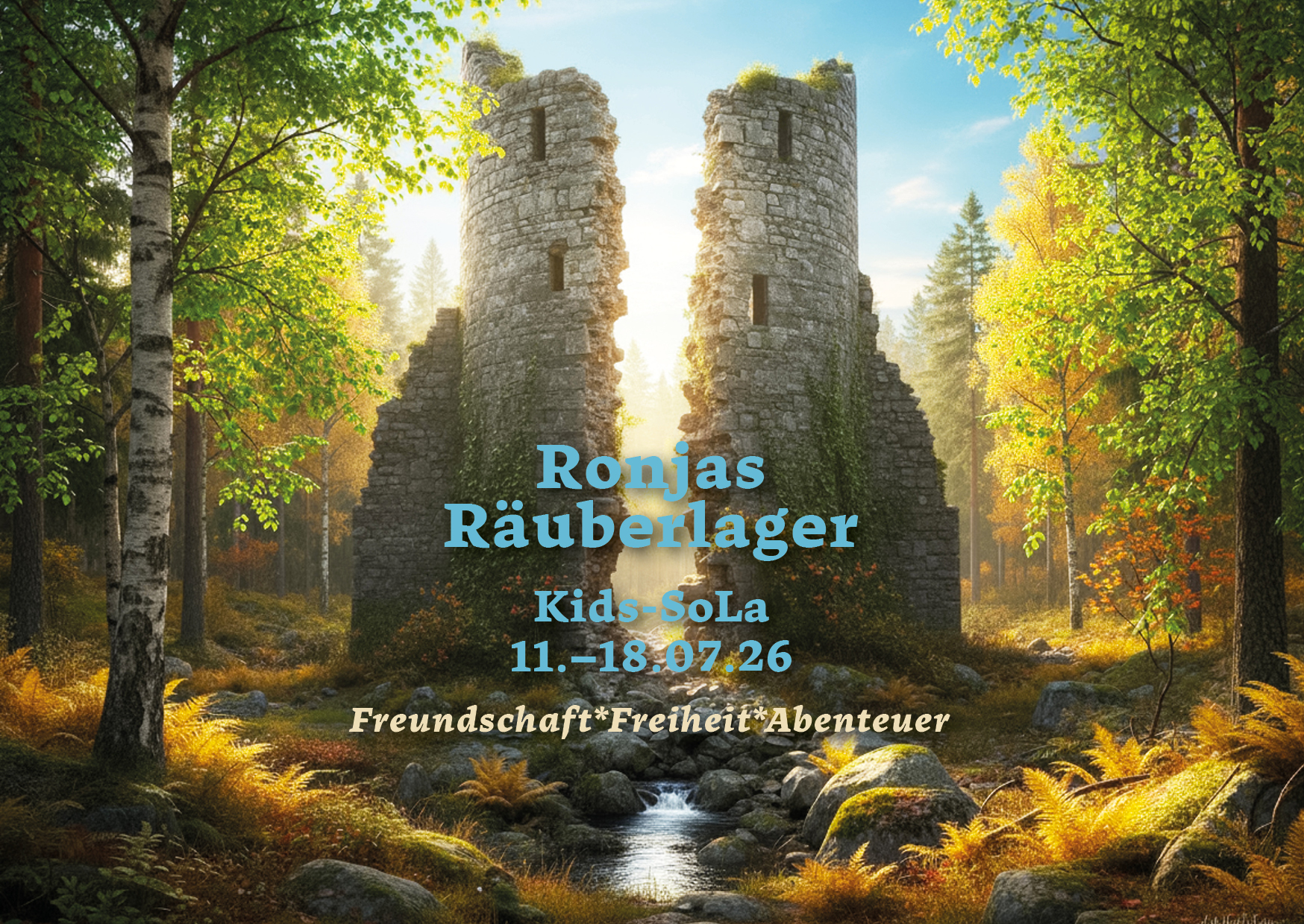 Nun lädt Ronja alle Räuber zu einem Fest auf die Mattisburg im Tharandter Wald ein. Dort wird es Speis, Trank und wilde Räubertänze geben. Wenn auch du dich nach Abenteuer, Freiheit und rauem Räuberleben sehnst, dann melde dich ab 01.02.2026 fürs SoLa 2026 an. Wir freuen uns auf dich!